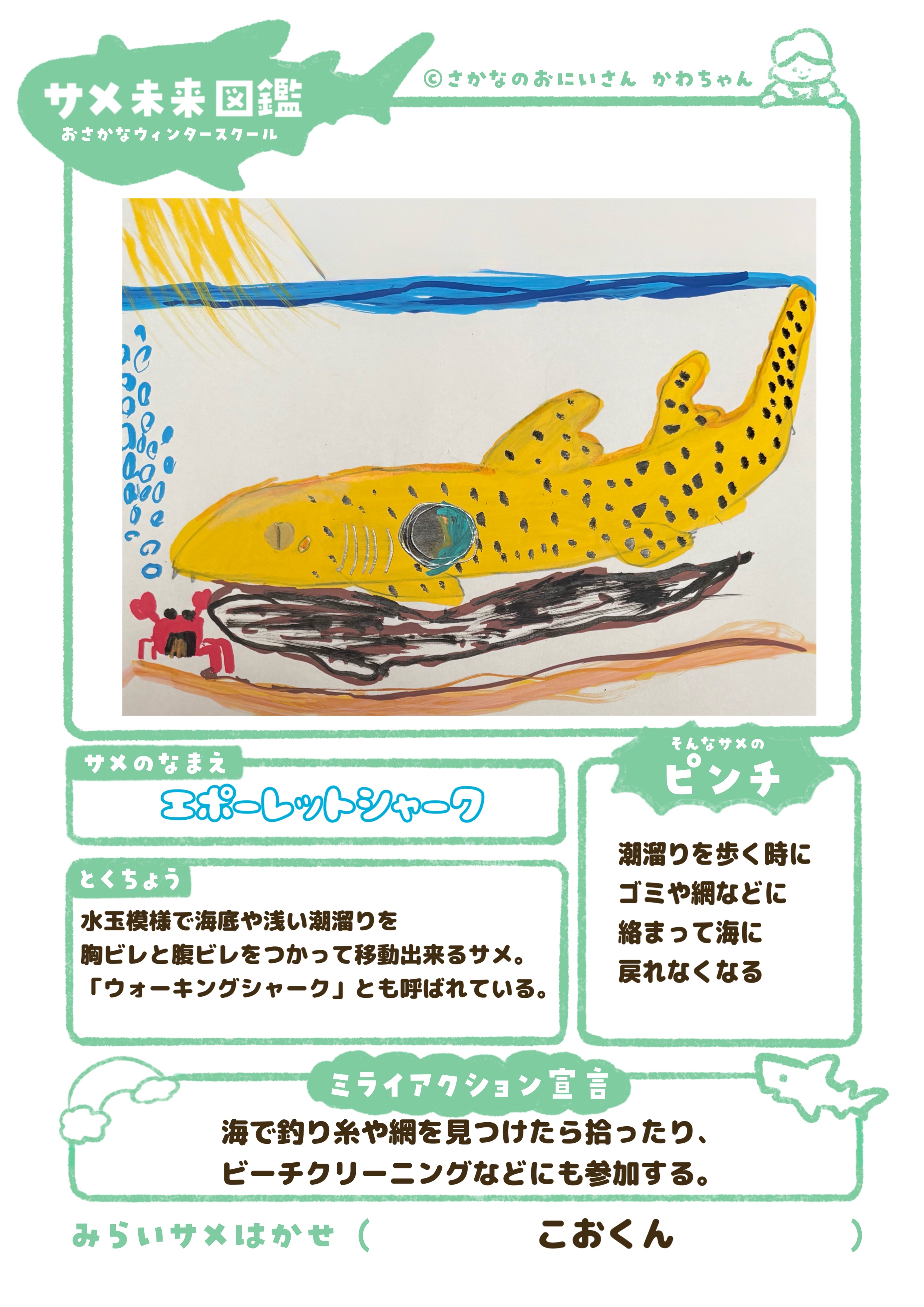 サメの絵と“海を守る宣言”を描いた作品を提出すると、かわちゃんがYouTubeで講評&公式サイトに掲載!